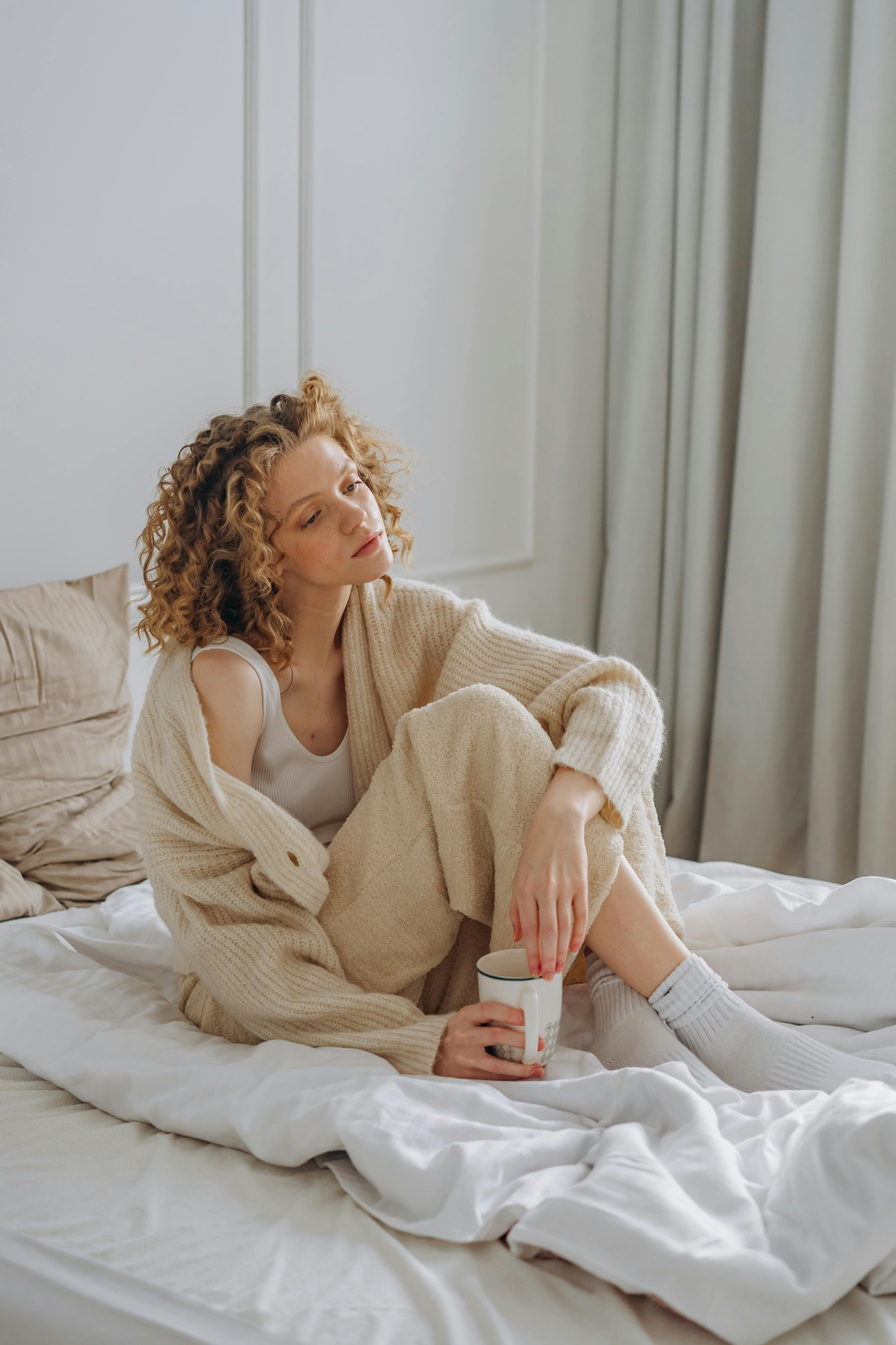 • Put on soft socks or your oversized sweater that drapes just right